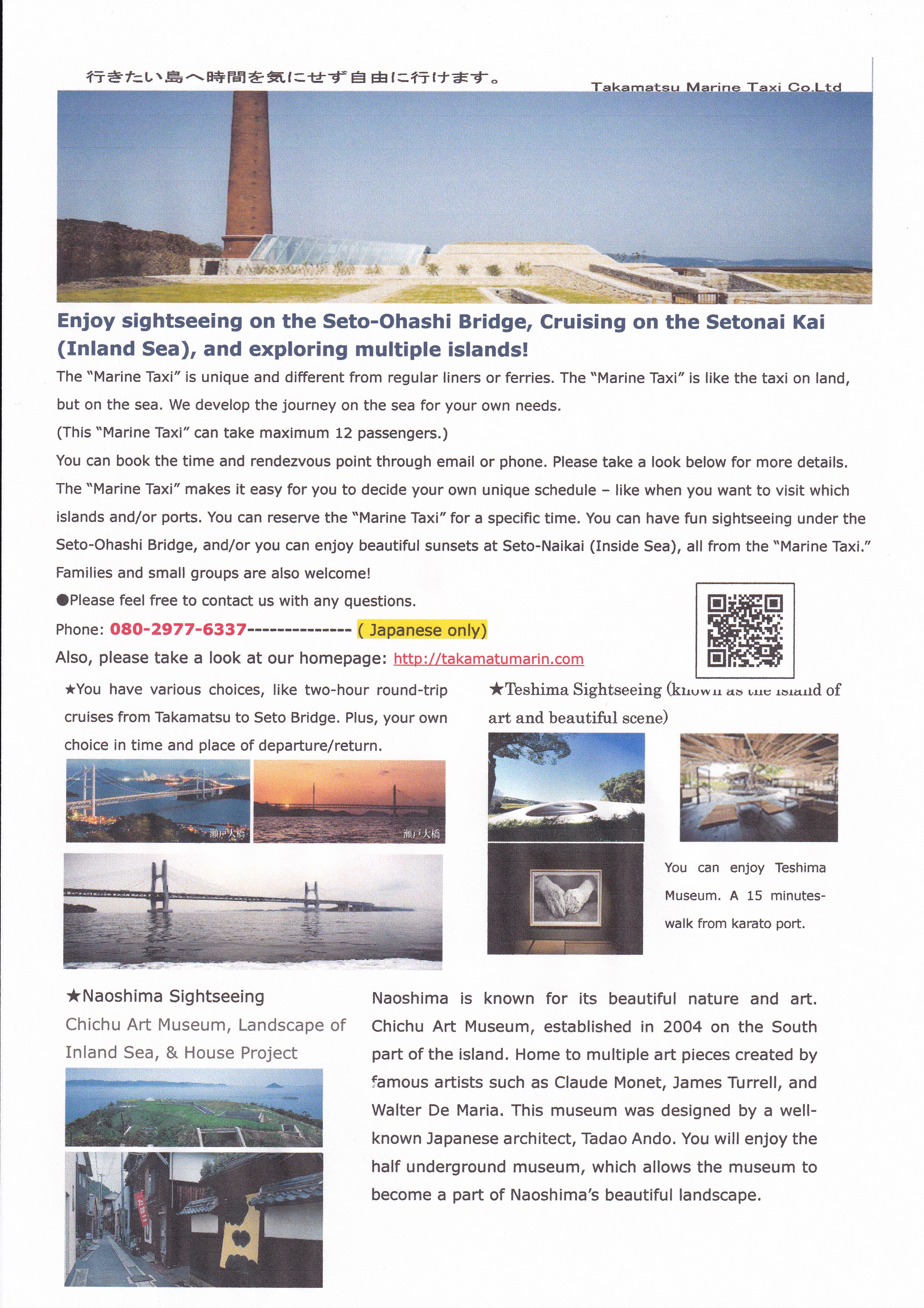 クルーズタクシー、ART SETOUCHI 各島々等の渡航にご利用下さい。